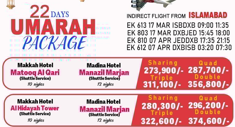 EK613/17MAR ISB-DXB EK803/17MAR DXB-JED EK810/07APR JED-DXB EK612/07APR DXB-ISB